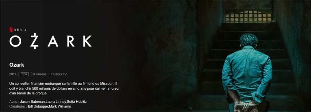 « Ozark: Un conseiller financier embarque sa famille au fin fond du Missouri. Il doit y blanchir 500 millions de dollars en cinq ans pour calmer la fureur d’un baron de la drogue. » – Netflix